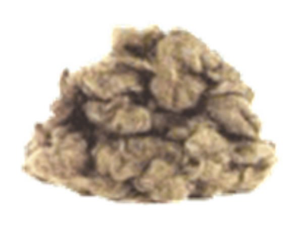 Flocos constituídos por fibras de lã de rocha.