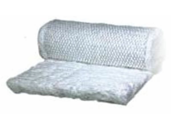 Manta de lã de vidro sem resina aglomerante sustentada em um dos lados por tela de aço galvanizado.