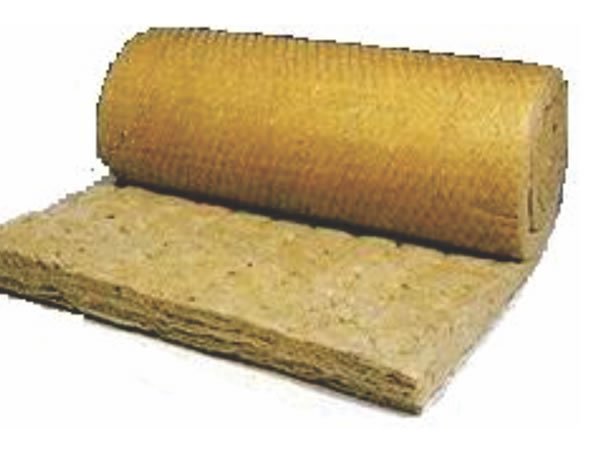 Manta de lã de rocha sem resina aglomerante sustentada em um dos lados por tela de aço galvanizado.